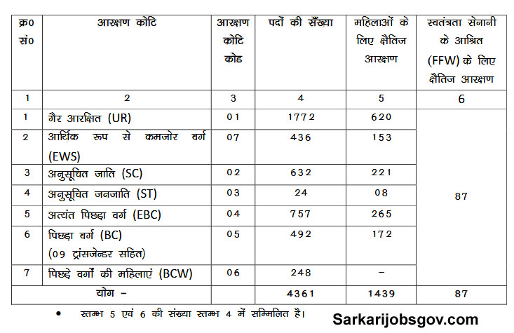 CSBC Bihar Police Driver Form : Category Wise Vacancy Details