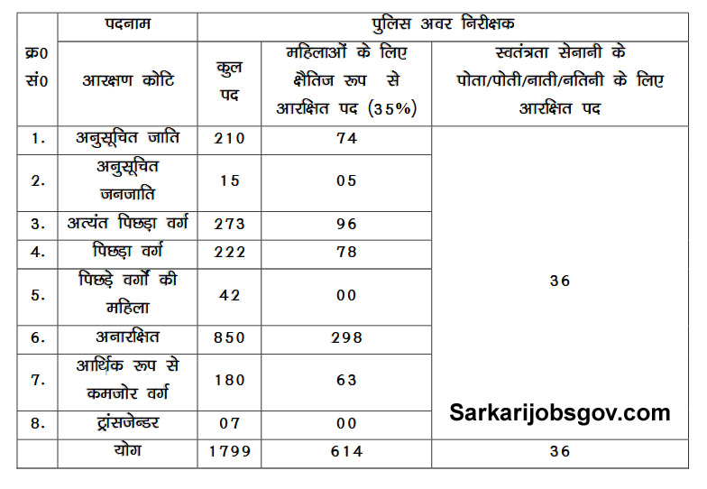 BPSSC Bihar Police SI Form 2025 : Category Wise Vacancy Details