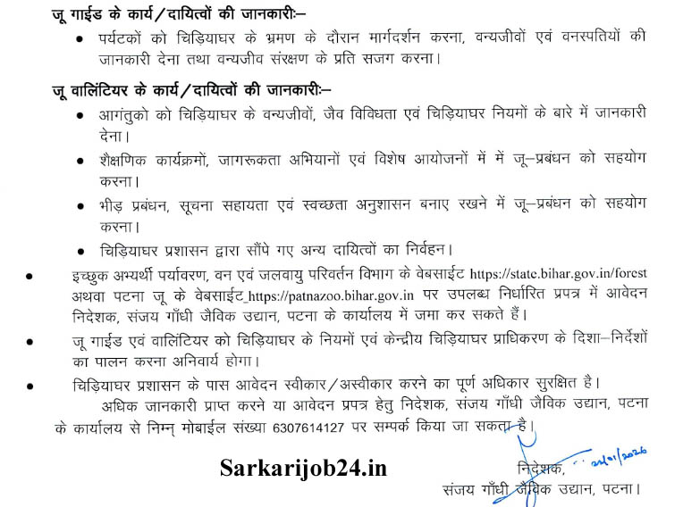 Bihar Patna Zoo Guide and Zoo Volunteer Form 2026 : Vacancy Details