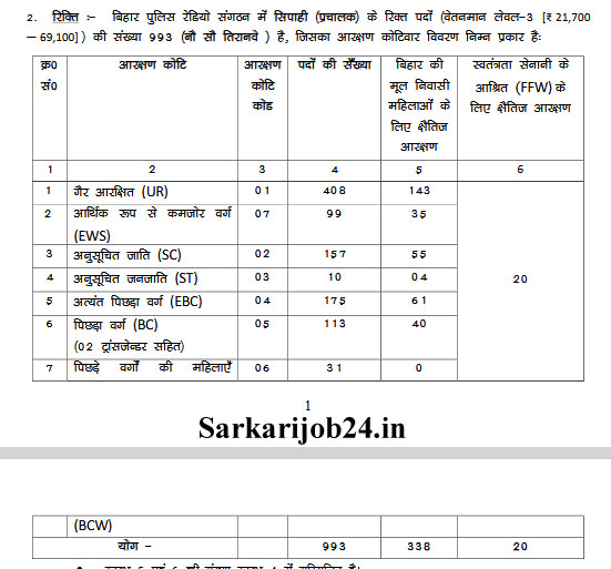 Bihar Police Advt No. : 02/2026 Short Details of Notification
